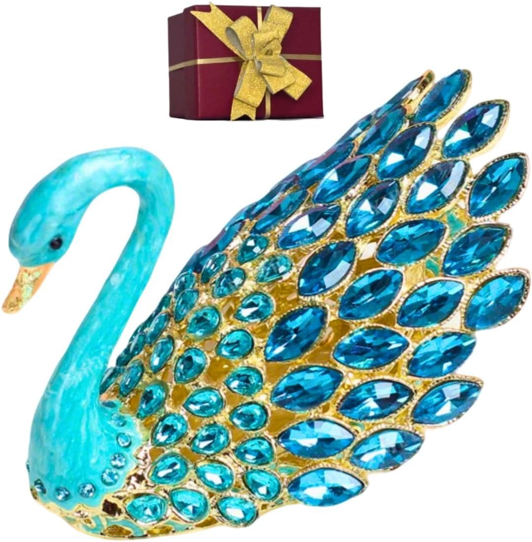 Valentine's Day Present Gift With Gift Box And Pull Bows, Blue Swan Trinket Boxes, Enamel Hinged Bird Jewelry Box, Handmade Ring Holder Home Decor, Tooth Box With Lid, Pocket Travel Trinket Organizer