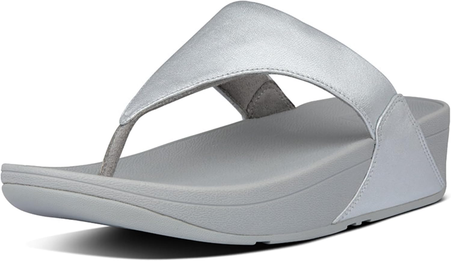 FitFlop™ Womens Lulu Leather Toe-Post Sandal, Silver, Size 8