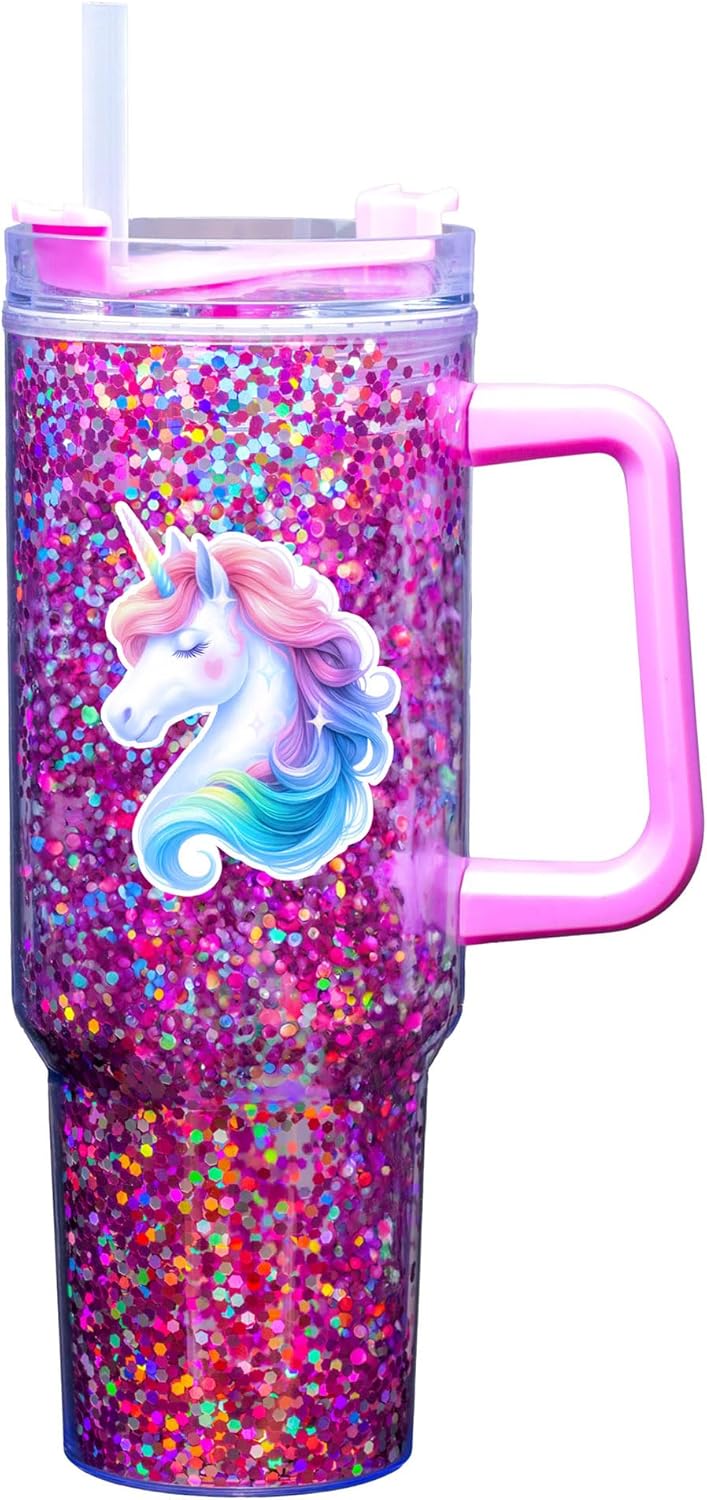 Spoontiques Unicorn 40oz Acrylic Travel Mug - Double Wall Acrylic with Sliding Lock Travel Lid and Straw - 11" Tall