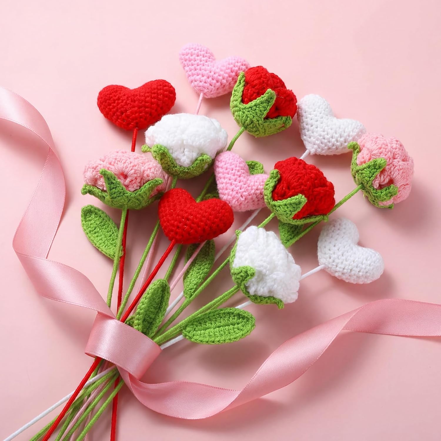 - Product includes: Our Valentine's Day heart-shaped flower arrangement contains 6 crocheted heart-shaped flowers and 6 crocheted roses in three colors: red, pink, and white. which can be applied as Valentine's Day centerpieces or as vase fillers, which is very suitable for Valentine's Day, anniversaries, or Mother's Day bouquets