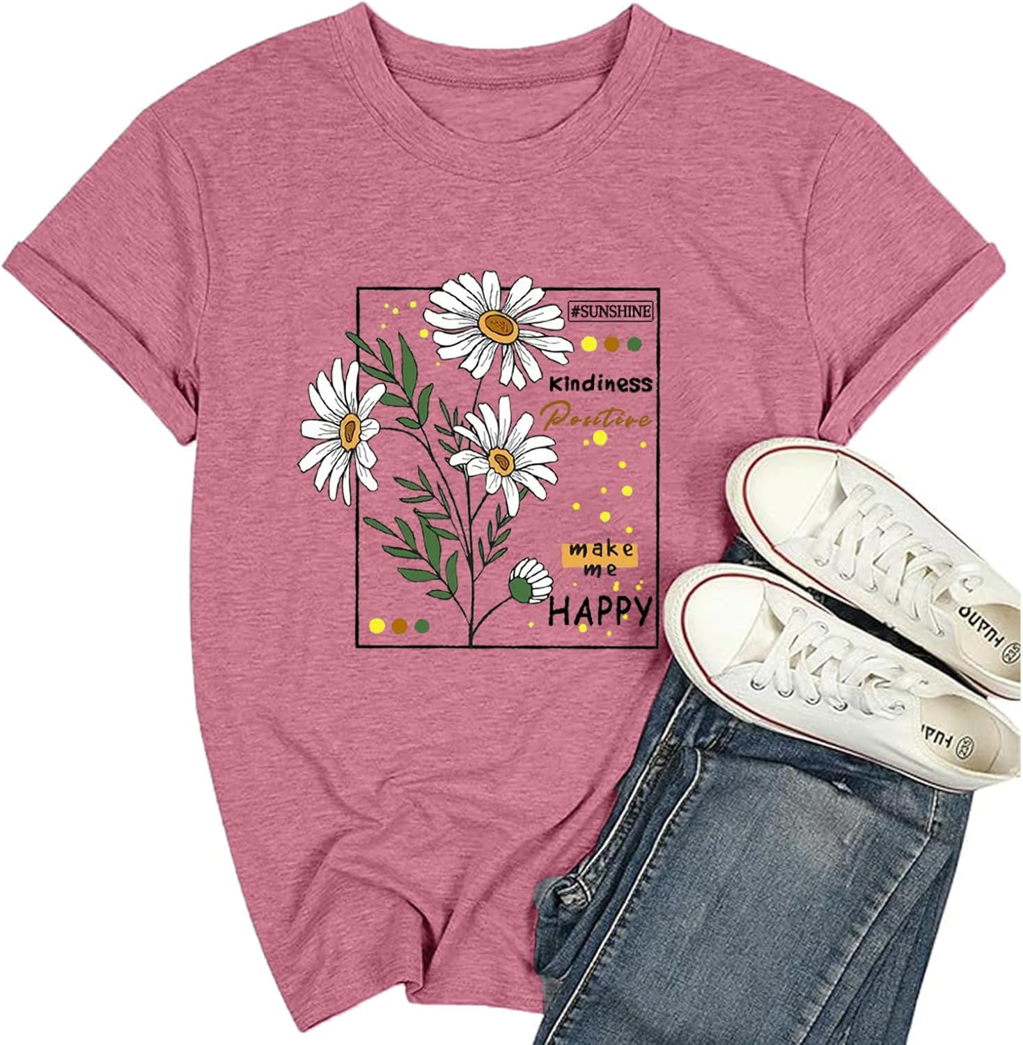 Flower Tshirts Shirts for Women Cute Dandelion Tshirt Casual Short Sleeve Wildflower Floral Heart Print Graphic Tee Tops