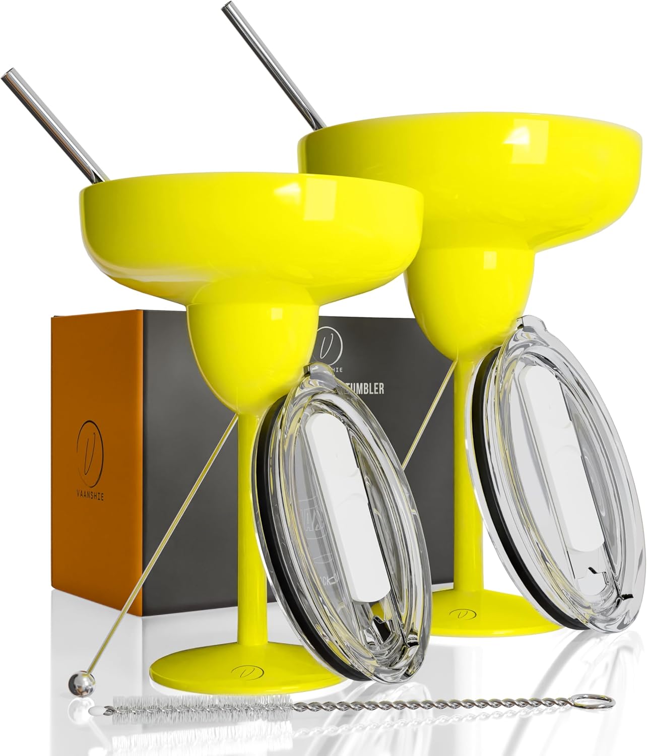 Vacuum Sealed Margarita Glass with Lid Break-Resistant Stainless Steel Margarita Tumbler for Cocktails & Cold Drinks | Perfect for Mother's Day Gifting (Lemon Yellow, Pack of 2)
