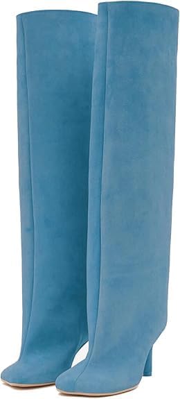 Knee High Boots for Women Faux Suede Wide Calf Square Toe Tall Stiletto Kitten High Heels Thigh Long Fall Boot Pull on Fashion Casual Cute Y2K