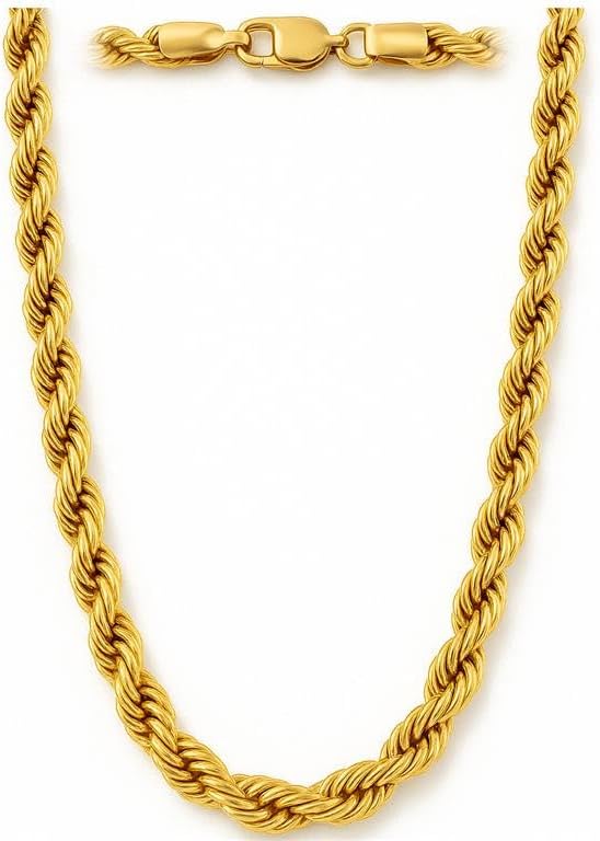 Real Solid 14K Yellow Gold Rope Chain Necklace for Men & Women Radiant Diamond Cut with Lobster Claw Clasp Heavy 14K Gold Chains Jewelry (3.5MM,5MM,6mm, 7mm, 8mm, 9mm)