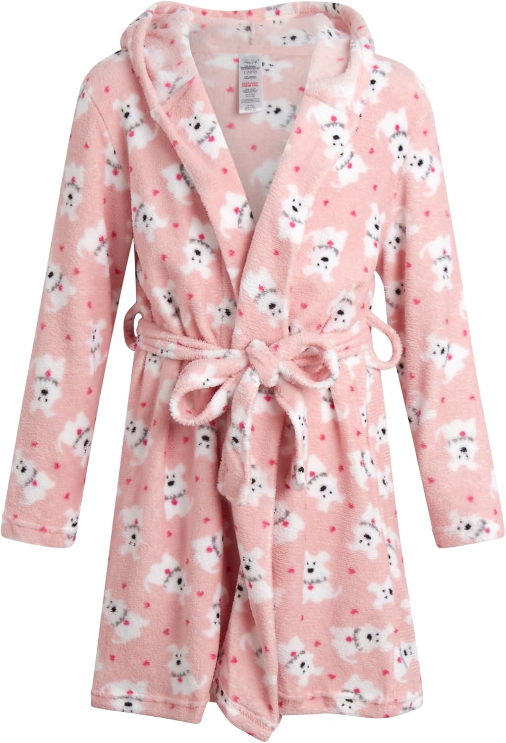 Rene Rofe Girls Robe - Cozy Warm Soft Fleece Hooded Belted Plush Dress Bath Robes for Girls with Holiday Prints