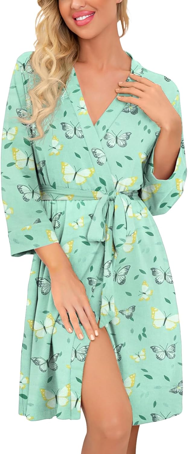 PrinStory Womens Robe Lightweight Short Knit Bathrobe Soft Ladies Sleepwear with Pockets