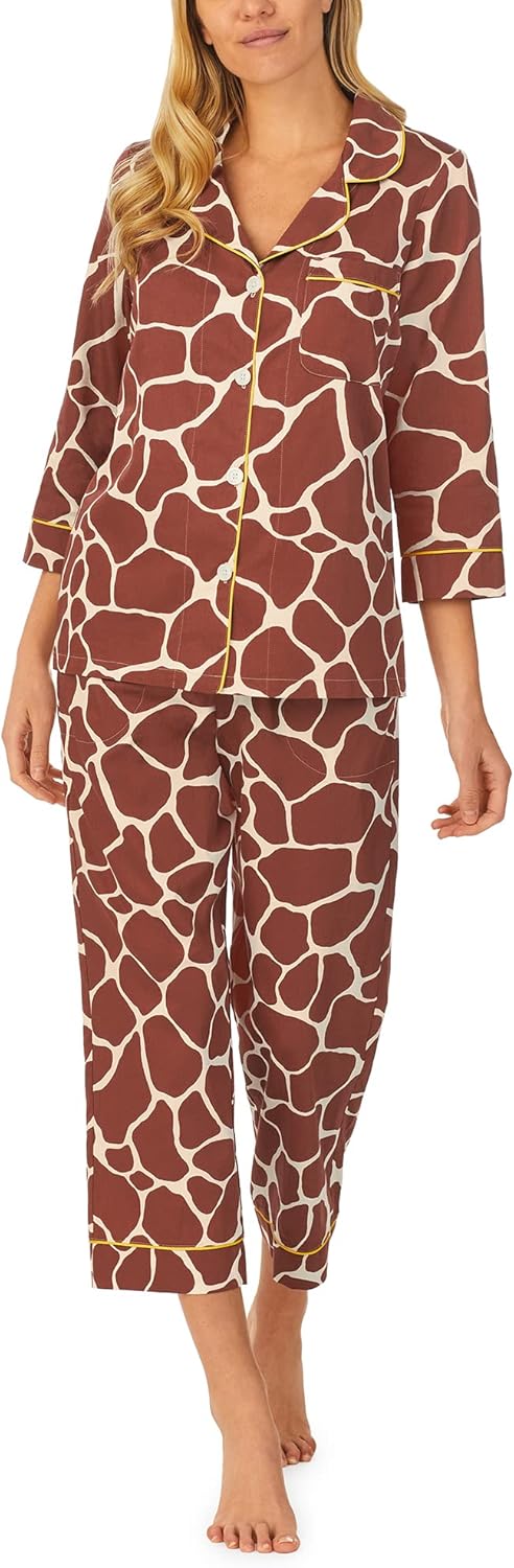 BedHead - 3/4 Sleeve Cropped Woven Cotton PJ Set - Giraffe - Small