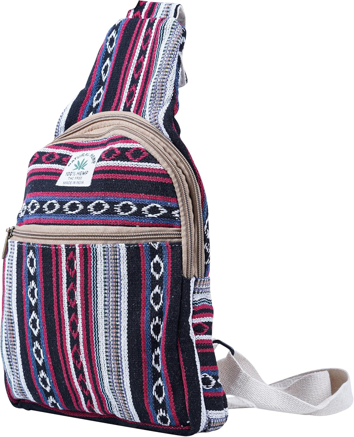 Marubhumi Hemp Small Backpack Cross Body Shoulder Himalayan Bag Adjustable Strap Men and Women Sling Bag Lightweight Daypack
