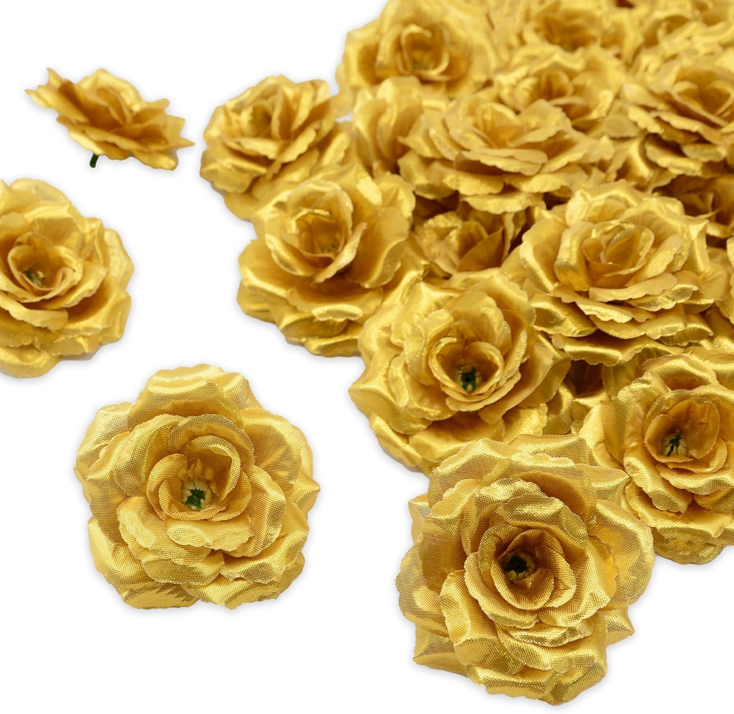 - PERFECT SIZE & PACKAGING - The package contains 50 pcs 3.2 inches in diameter fake silk gold rose buds, and rose flowers with 6-inch stems for assembly(To ensure that it does not fall off during movement, glue can be used appropriately to fix it). These mini roses are just the right size for all your crafting needs