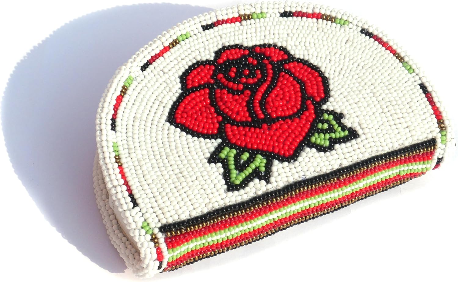 Beaded Coin Purse, Change Purse For Women, Zippered Change Pouch Wallet, Small Leather Pouch, designer key pouch (White Rose)