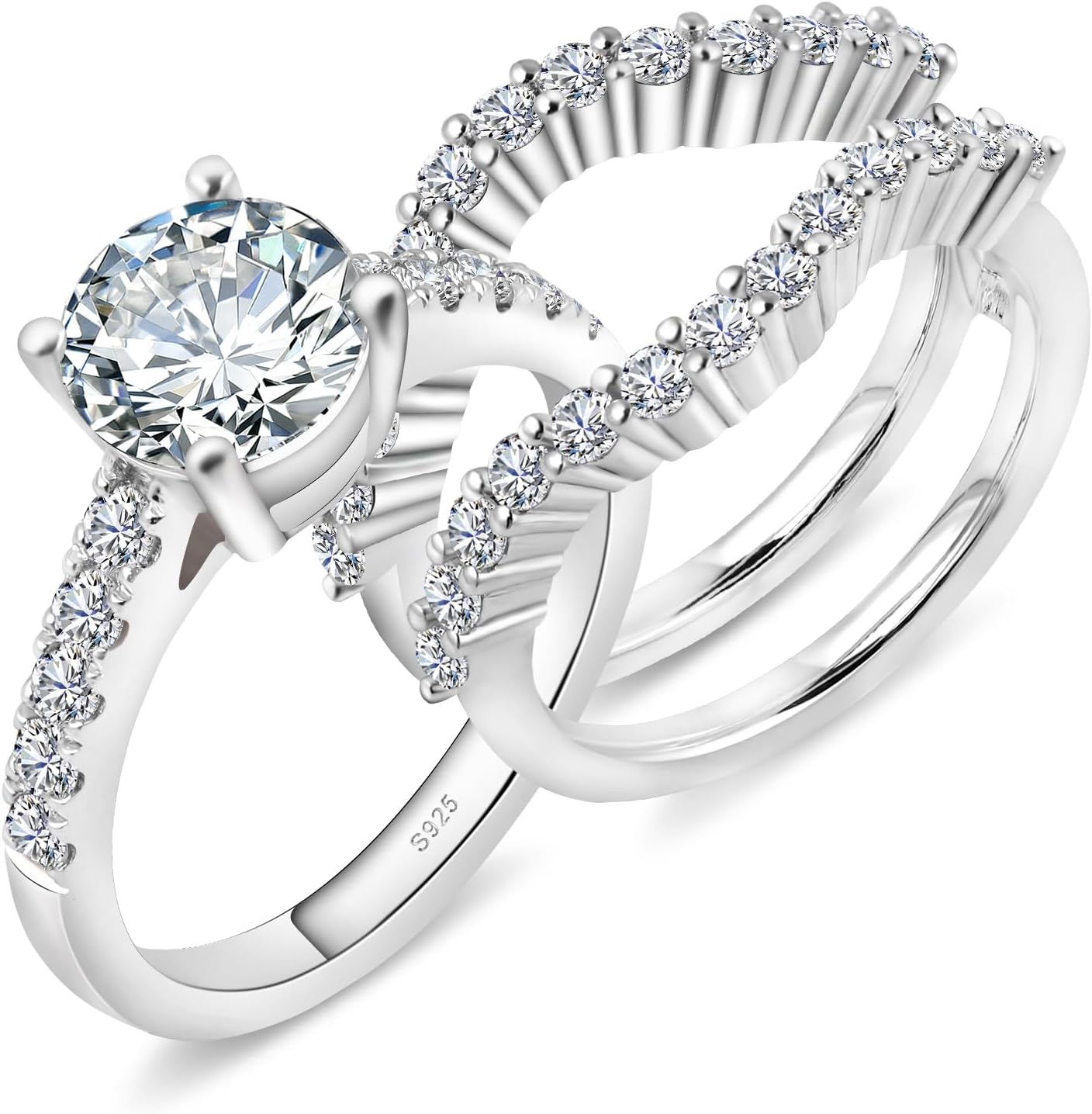 Moissanite Bridal Ring Sets for Women,3ct Round Cut D Color VVS1,S925 Sterling Silver with 18K White Gold Plated Engagement promise anniversary Wedding Bands Valentine's Day Gift(size 4-11)