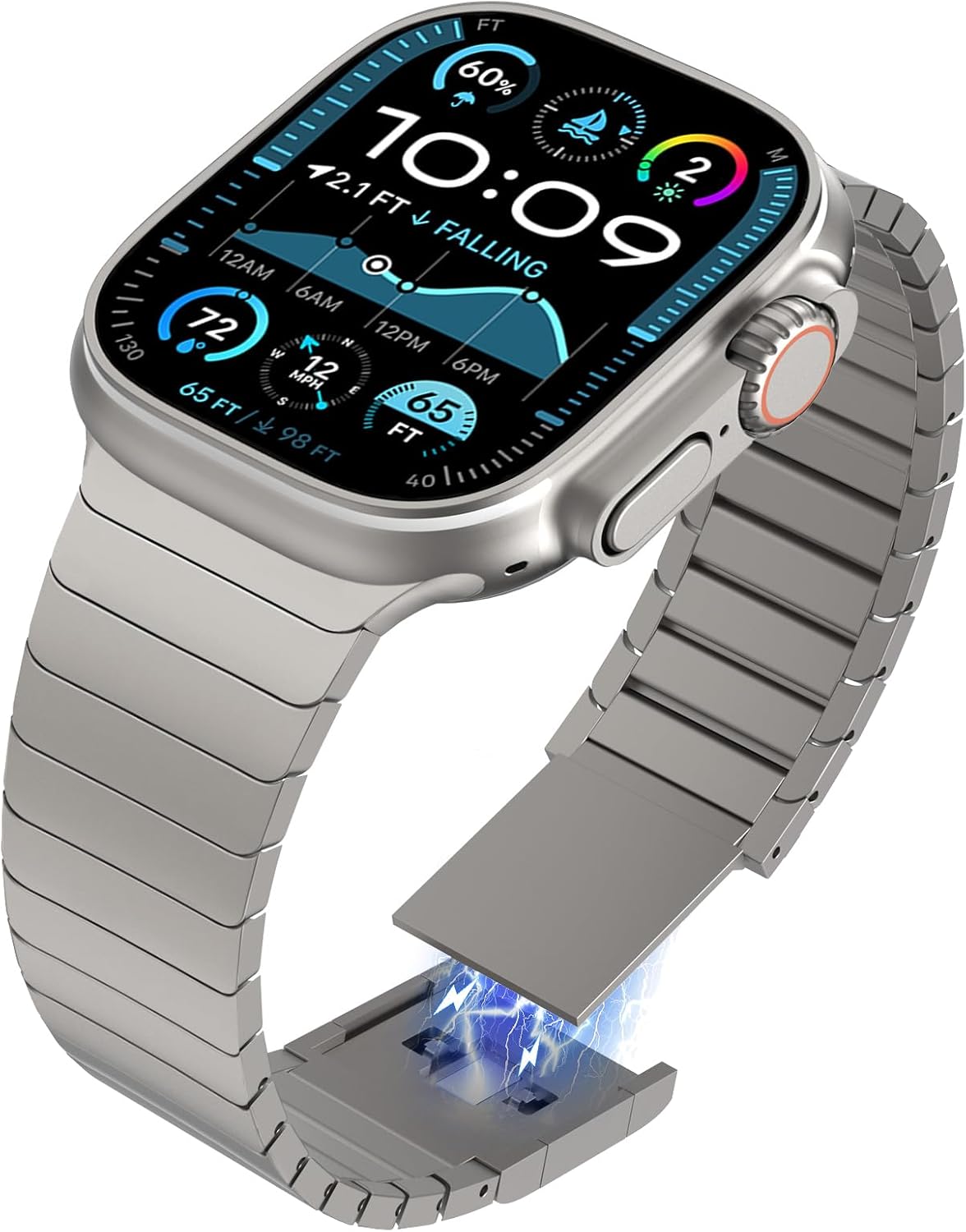- 【Premium Stainless Steel Bracelet with Titanium Finish Layer】Same color with the Titanium Apple Watch Ultra 3/2/1. Made from upgrade satin-brushed stainless steel material, crafted from superb polishing and electroplating process with advanced workmanship. The masculine, strong and clean lines design with glossy finish of the band makes a minimalist aesthetic, more conspicuous.