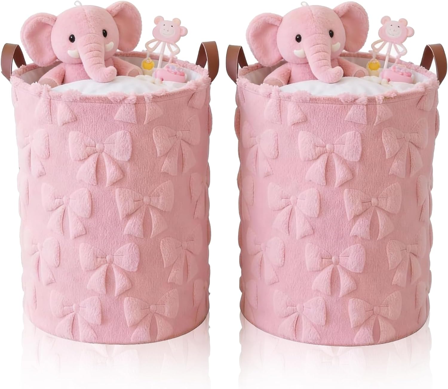 - Generous Storage Capacity: this spacious pink bow laundry hamper a 13.39 inch diameter and a height of 17.72 inches, these pink storage bins offer ample room for all your belongings; Ideal for holding laundry, cozy blankets, clothes, and a variety of books, fitting seamlessly into any corner of your home