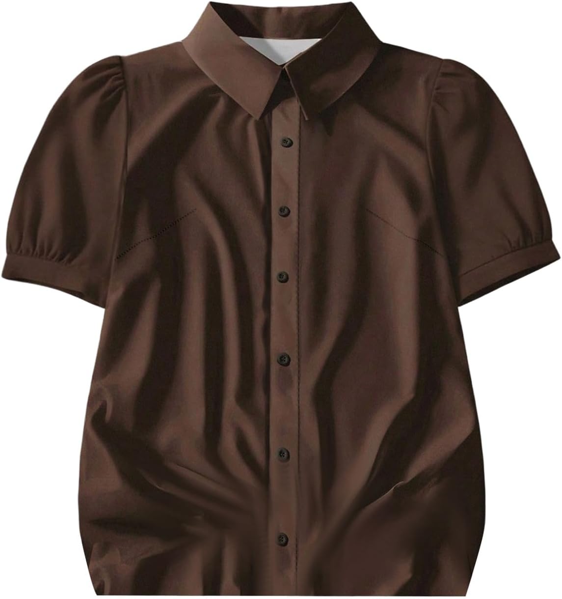 SOLY HUX Women's Plus Size Button Up Satin Blouse Short Sleeve Collared Shirt Tops