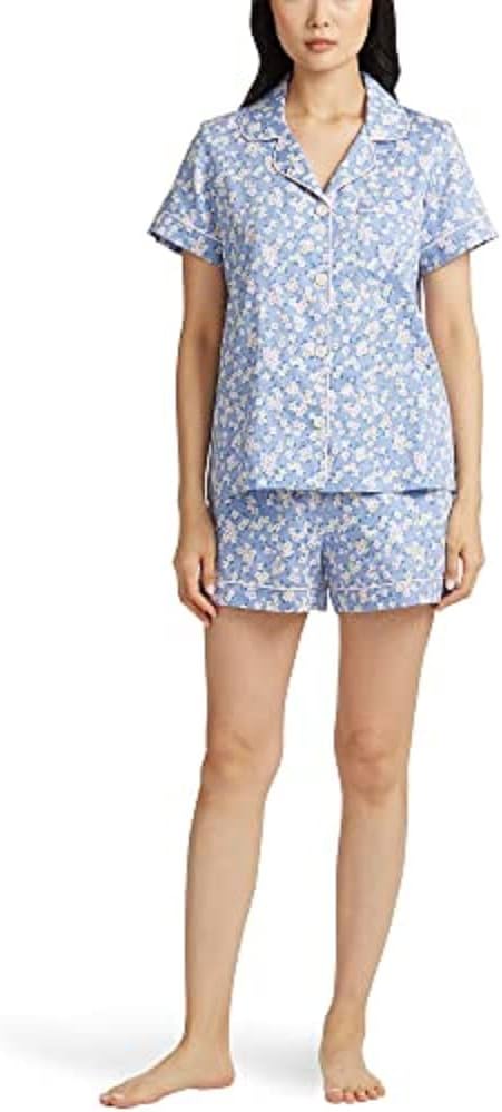 WDIRARA Women's 2 Piece Bow Print Pajama Set Short Sleeve Button Down Lounge Shorts Sleepwear Sets