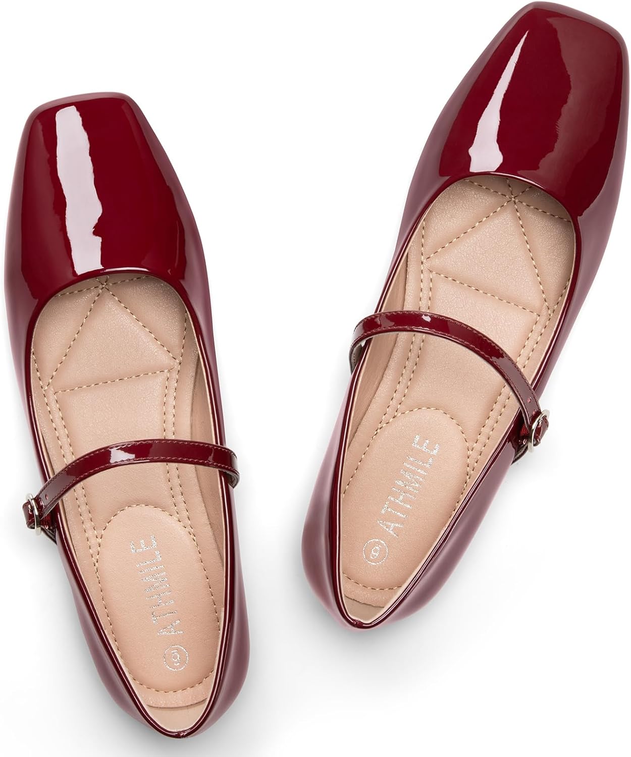 ATHMILE Mary Jane Shoes Women Ballet Flats Shoes for Women Slip on Comfortable Dressy Adjustable Strap for Work Office Business Casual