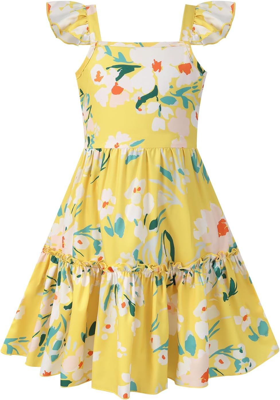 Girls Summer Floral Dresses Tie Back Flutter Sleeves Casual Spring Dress for 4-12 Years