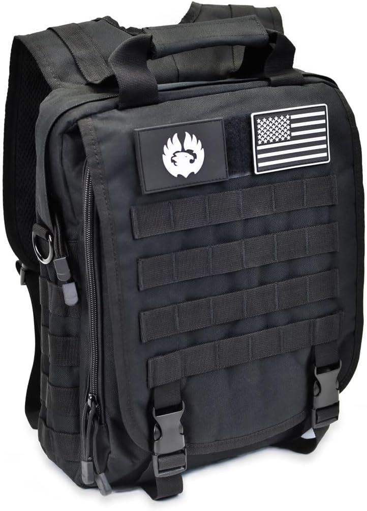 - MOLLE webbing: Attach MOLLE accessories to the front and sides of the bag. Secure your knives, keys, phone or first-aid pouches, water bottle holders, flashlight holsters, carabiner clips, walkie talkies, and other utility items with the external MOLLE system.