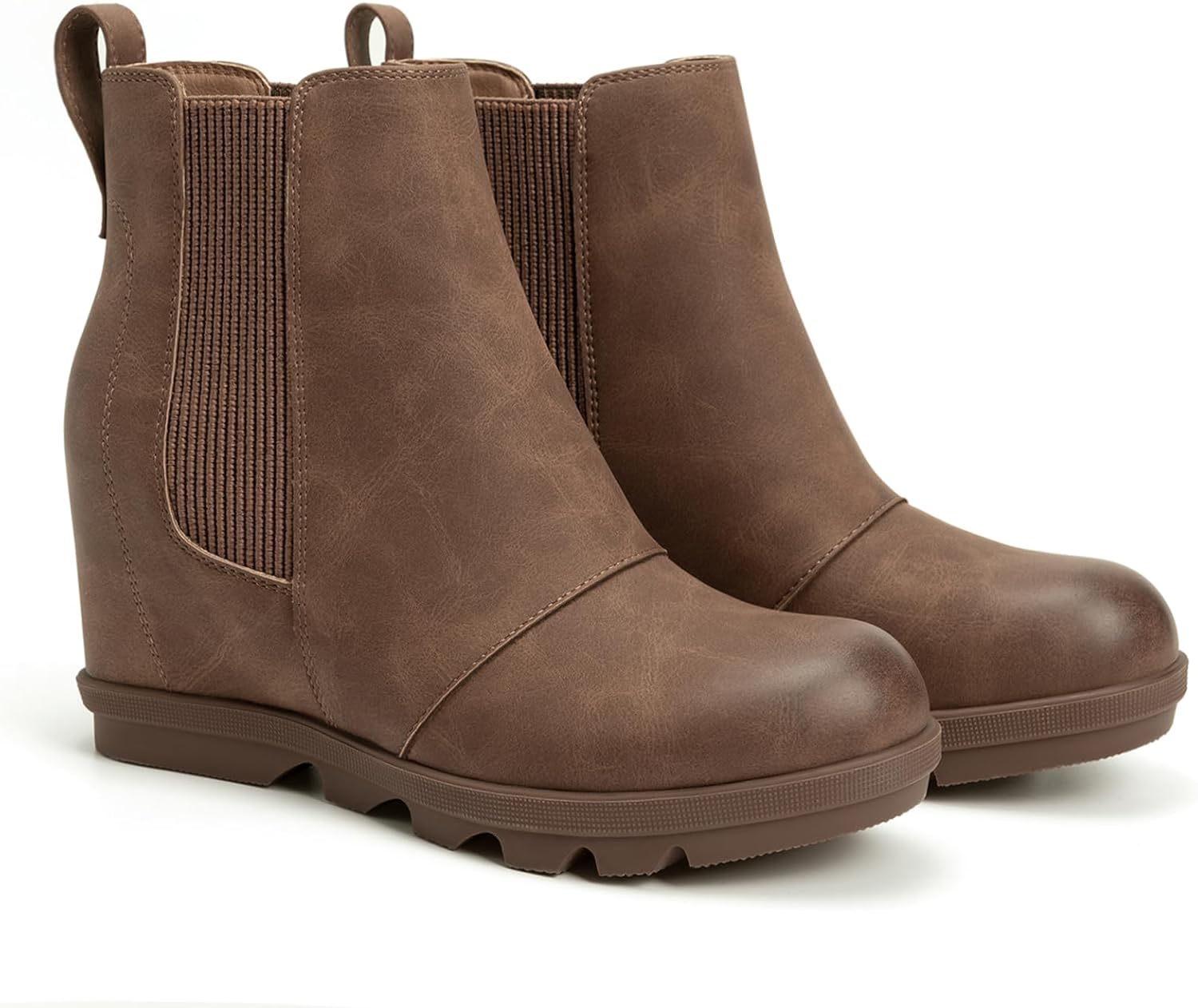 Athlefit Women's Wedge Boots Comfortable Ankle Wedge Booties
