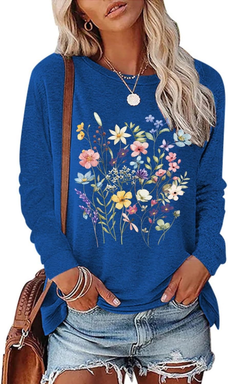 Women's Vintage Floral T Shirt Boho Wildflower Graphic Loose Tees Fall Long Sleeve Blouse Shirts Casual Tunic Tops