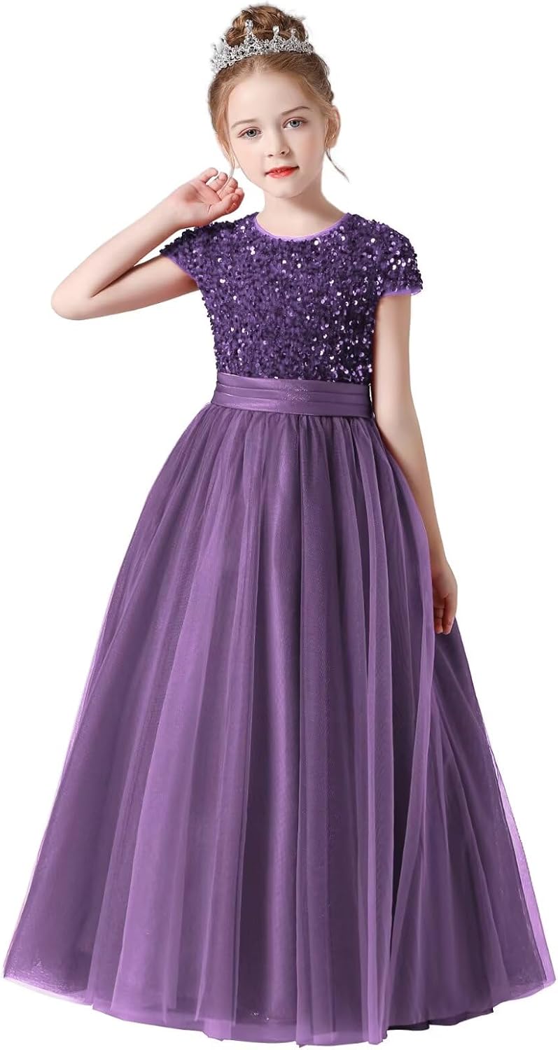 Flower Girl Dresses Wedding Bridesmaid Sequins Tulle Puffy Skirt Girls Birthday Party Pageant Gown Floor Length