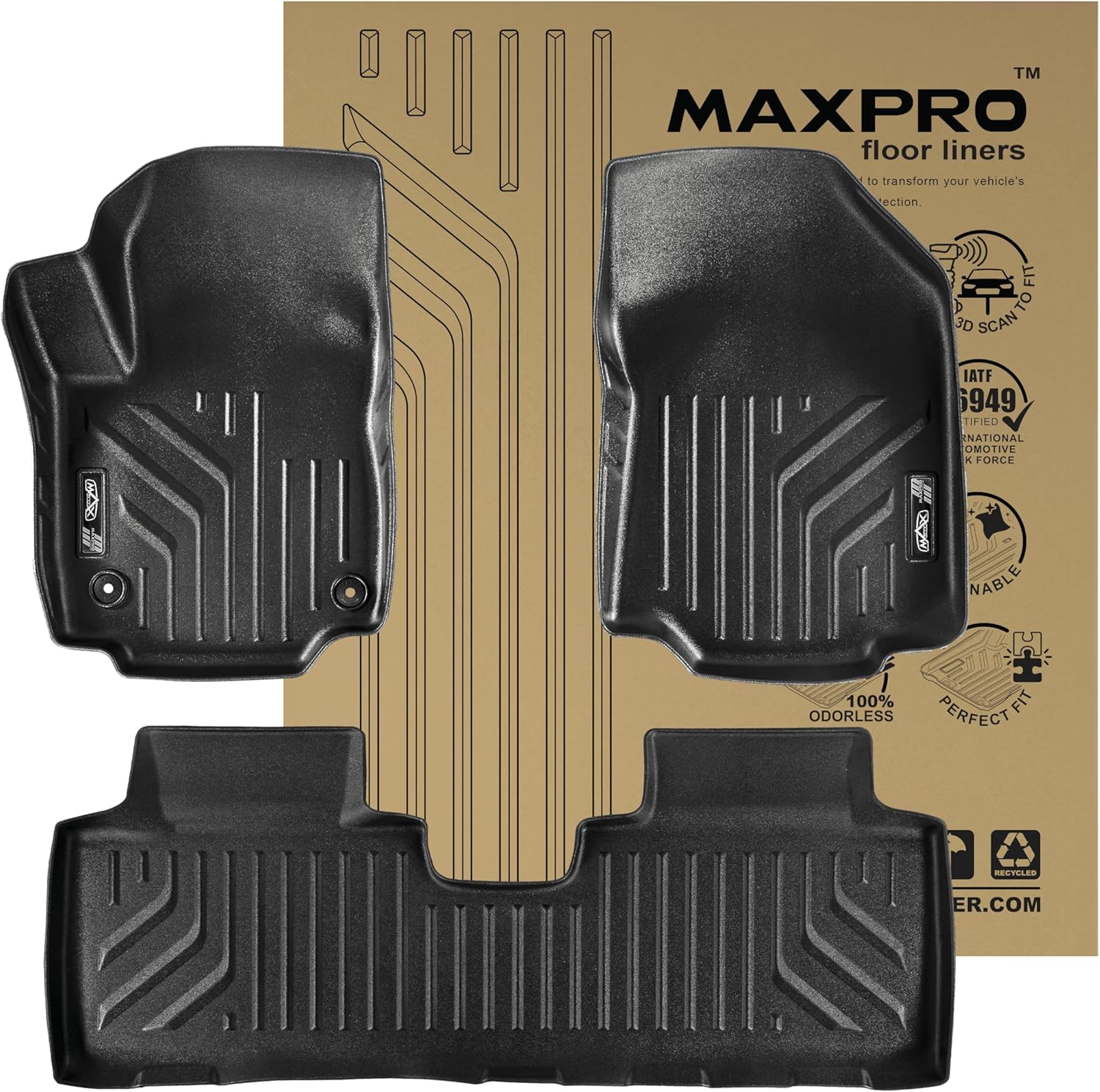 MAXPRO Floor Liner Compatible with GMC Terrain (2019-2024). Custom-fit, Heavy-Duty, All-Weather mats. Waterproof for Tough Conditions. 1st and 2nd Row Custom Floor Mats.