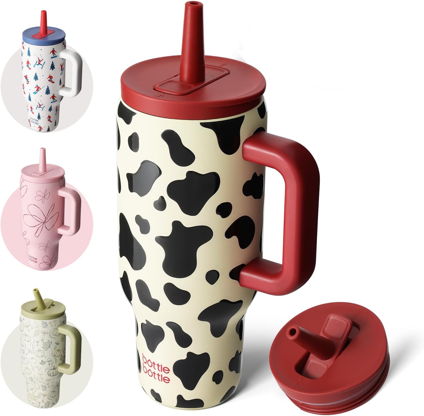 BOTTLE BOTTLE 30 oz Tumbler with Lid and Straw, Stainless Steel Travel Mug, Tumbler with handle, Water Bottle with straw for College Office, Gifts for Women Him Her (Cow)