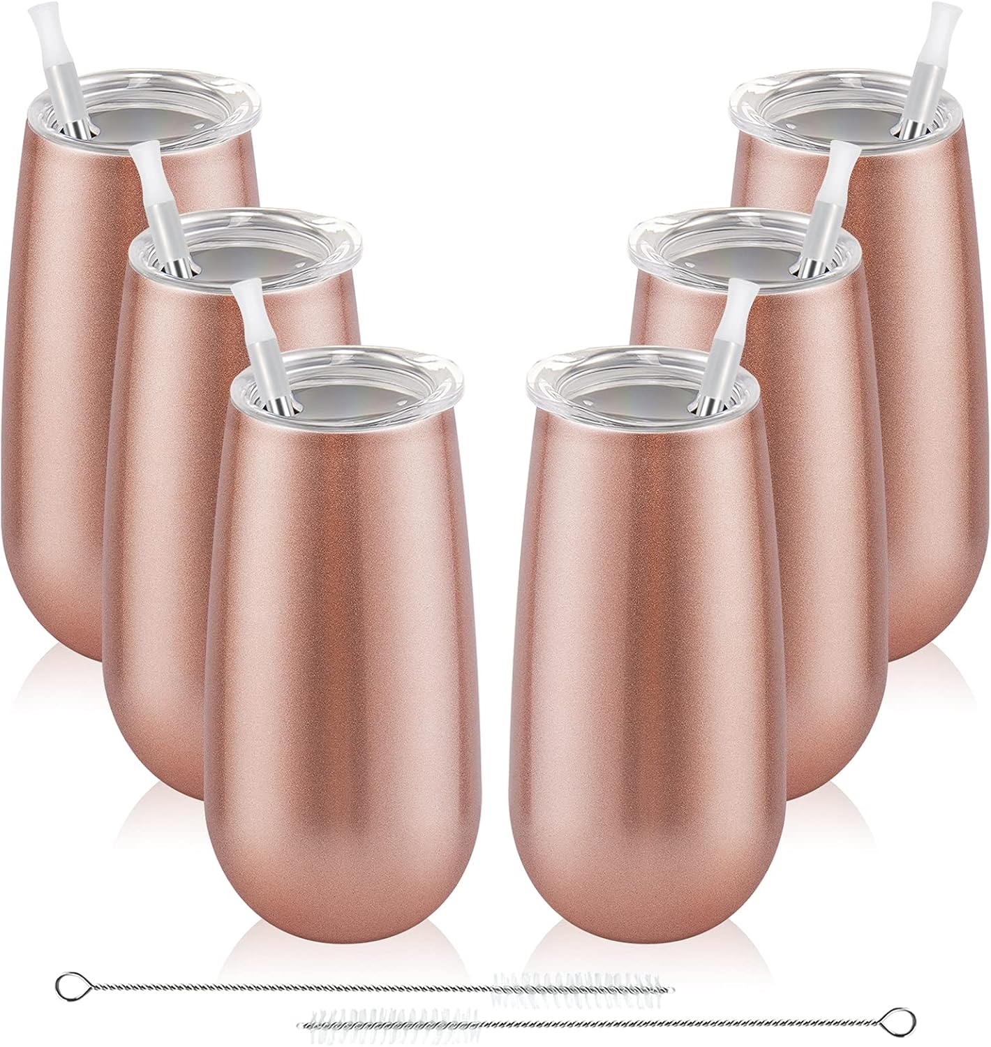 6 Pack Insulated Champagne Tumblers, Stemless 6 Oz Wine Flutes, Unbreakable Cocktail Cups With Lid, Gift for Family Friends Christmas Birthday Wedding (Rose Gold)