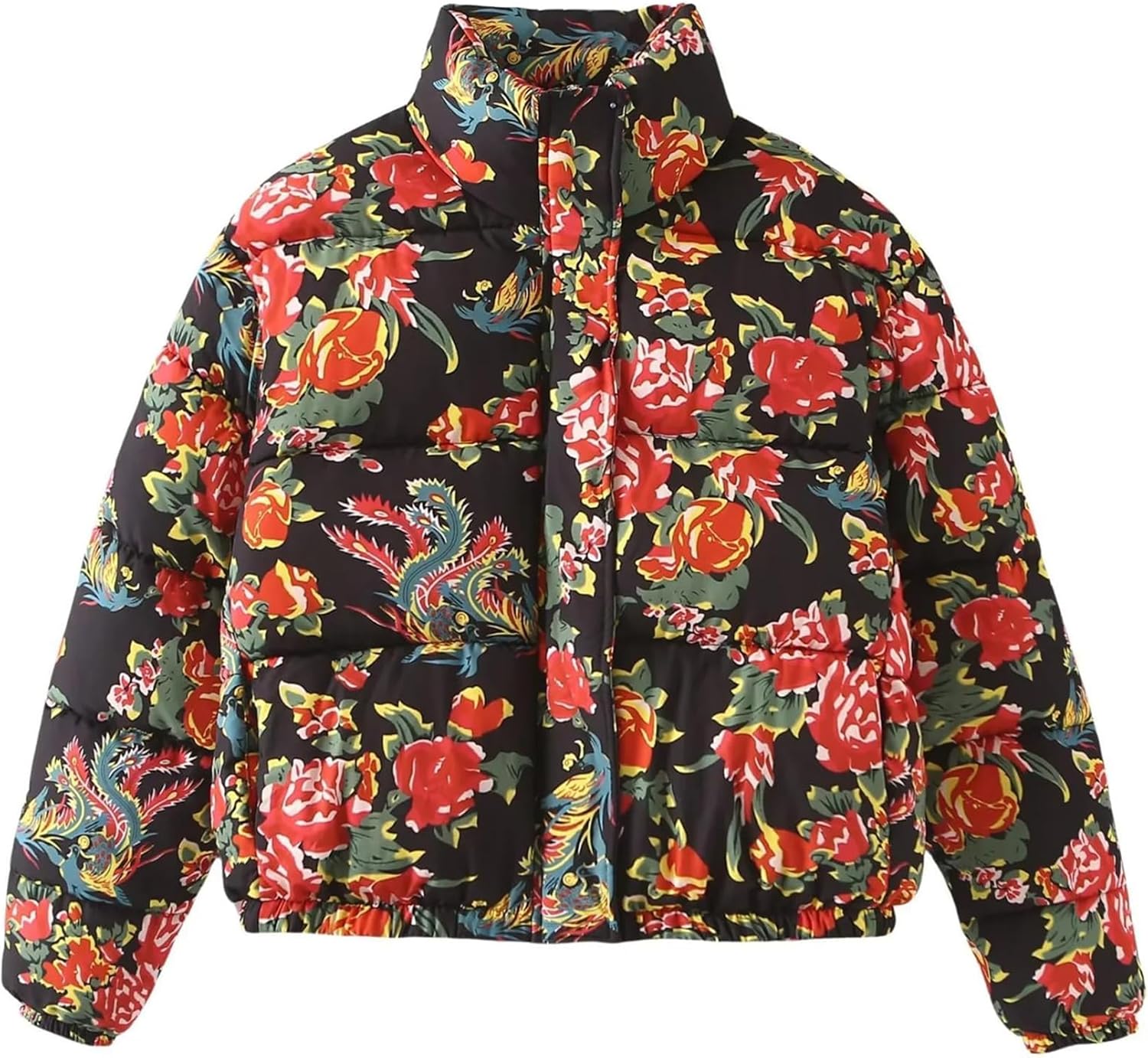 Women Floral Puffer Jacket Cropped Lightweight Quilted Coat Warm Vintage Boho Streetwear