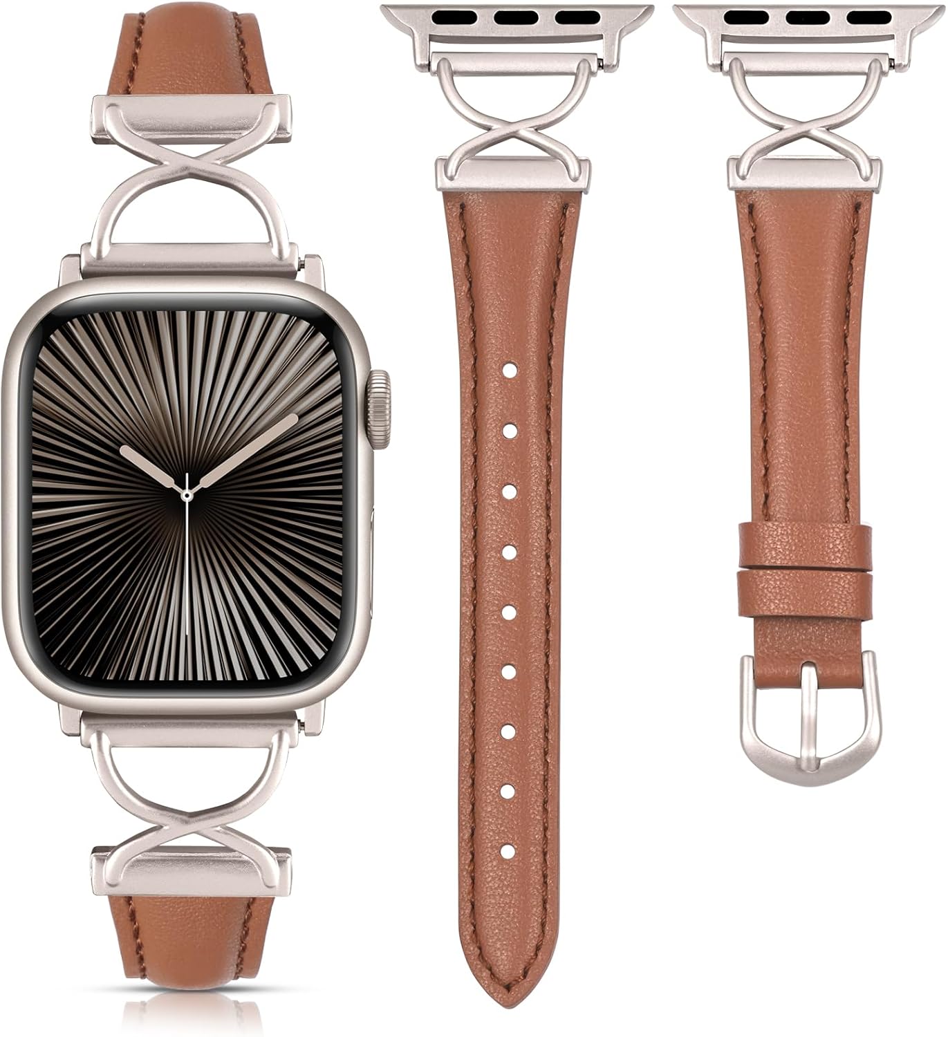 Wearlizer Slim Leather Band Compatible with Apple Watch Bands 40/38/41/44/42/45/46/49mm Women, Dressy Fancy Designer Thin Leather Strap for iWatch Series 11 10 9 8 7 6 5 4 3 SE/Ultra 3 2 1