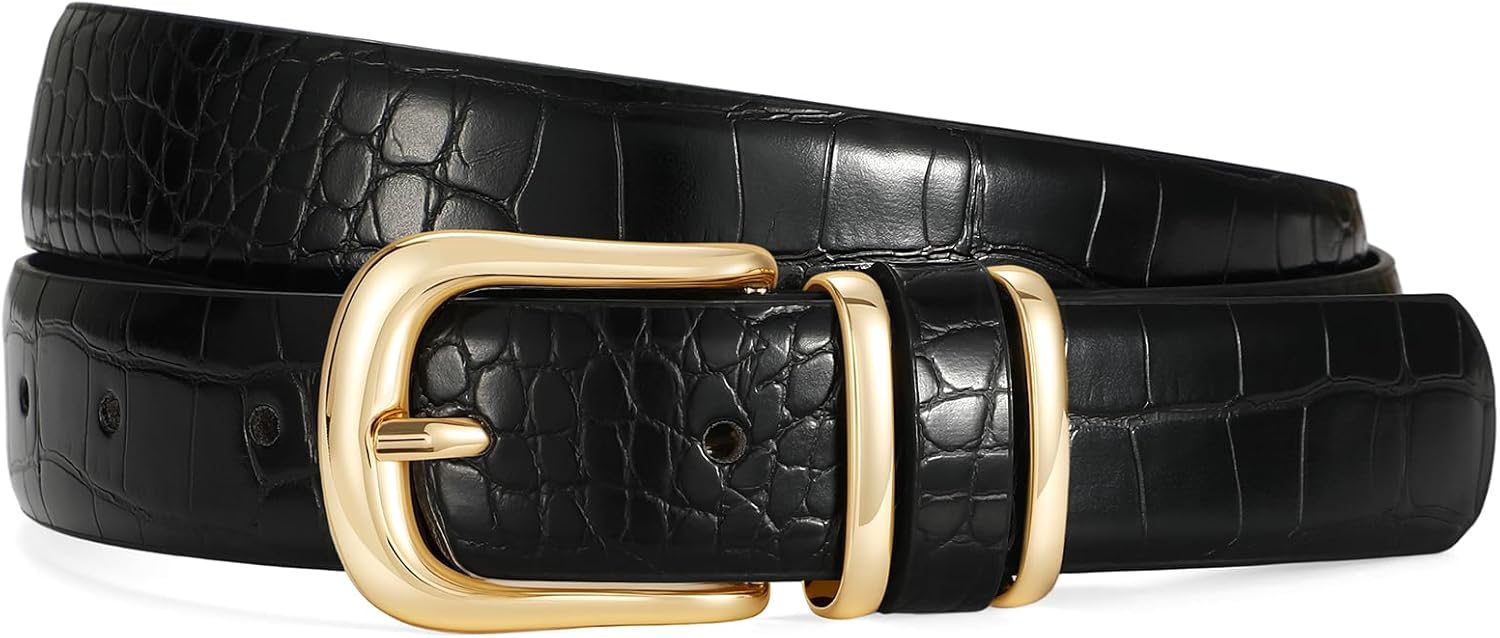 Women Leather Belts for Jeans Pants Fashion Gold/Silver Buckle Ladies Dress Waist Belt Crocodile Grain