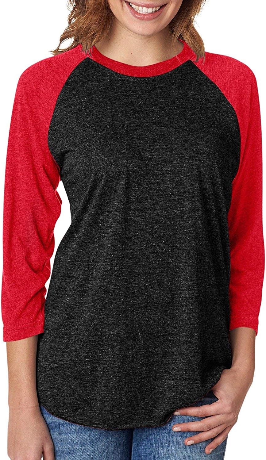 Next Level Apparel 6051 Unisex Tri-Blend 3 by 4 Sleeve Raglan - Vintage Black & Red, Large
