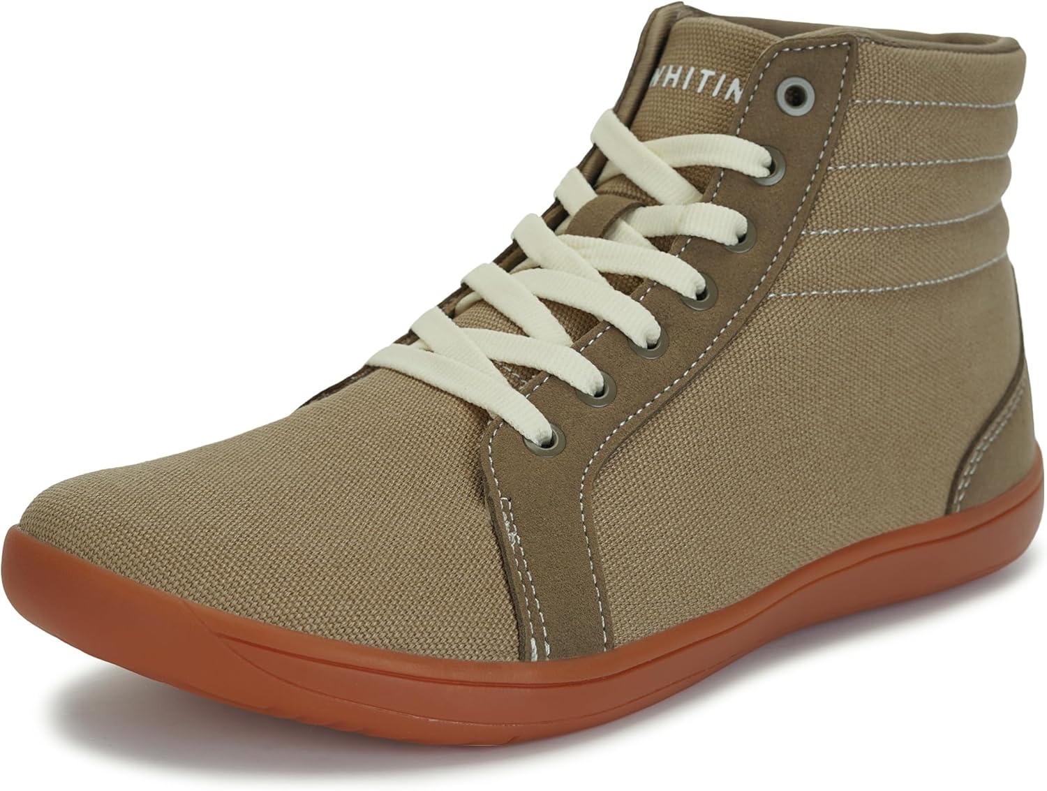 WHITIN Men's Wide Hi-top Minimalist Barefoot Sneakers | Zero Drop Sole | Cushioned Ankle Support