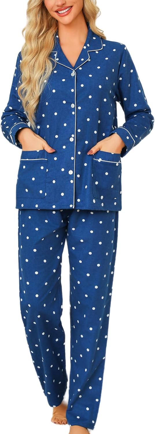 ENJOYNIGHT Womens Cotton Flannel Pajamas Set Long Sleeve Button Down Sleepwear Set
