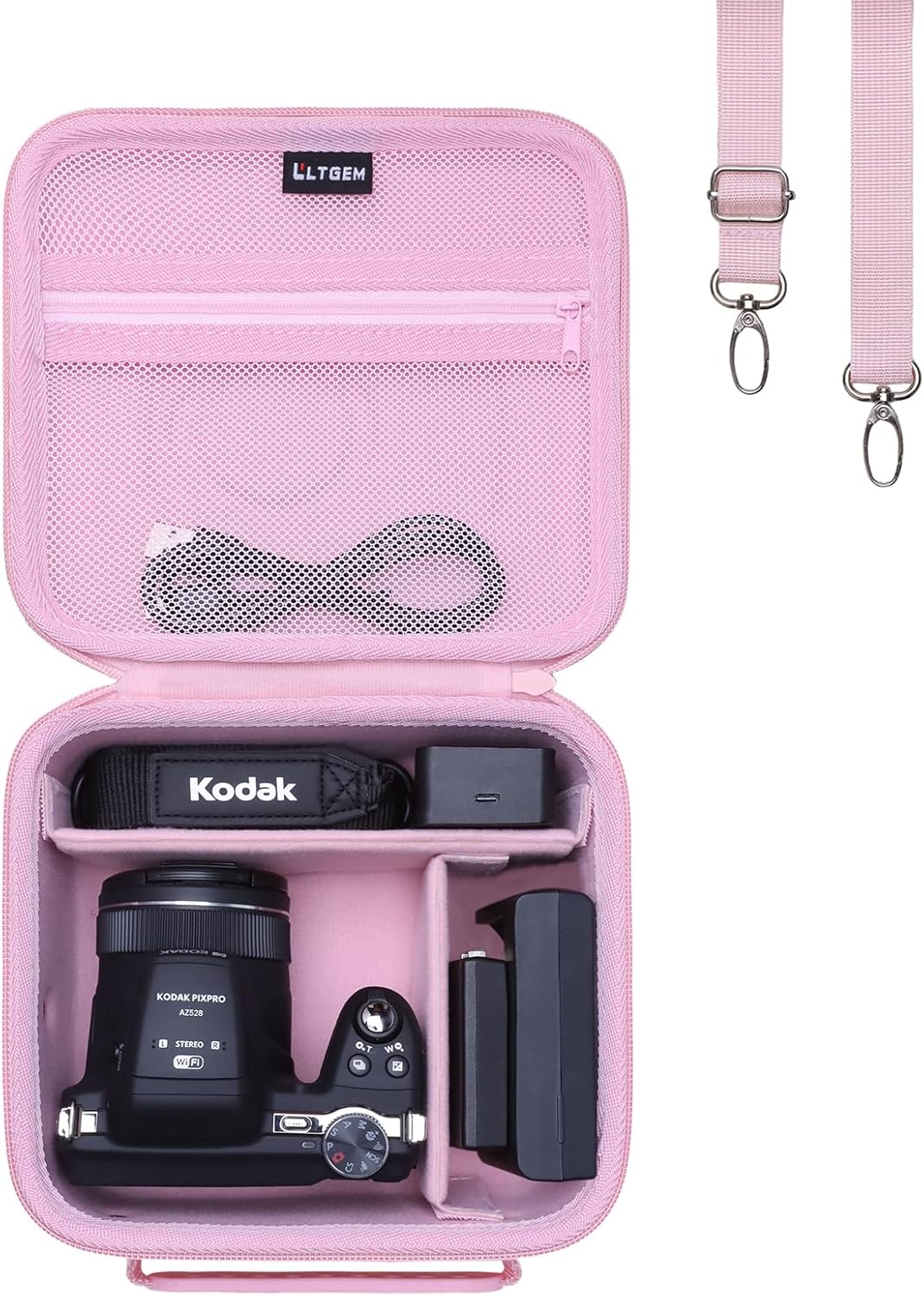 L LTGEM Camera Case Compatible with KODAK PIXPRO AZ405 / AZ528 / AZ425 / AZ255 Digital Camera and Accessories, with 2 Dividers and Shoulder Strap, Pink