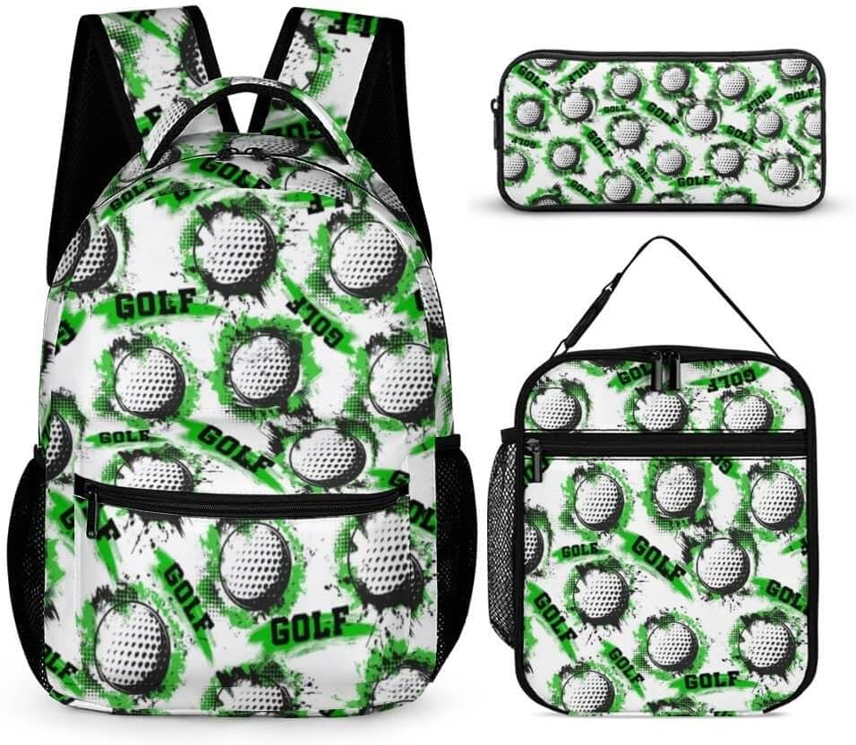 - Vibrant Design: Elevate your child's school experience with the lively colors and eye-catching patterns of our Golf School Backpack Set. Ignite excitement and enthusiasm, setting them up for a day brimming with energy and creativity.
