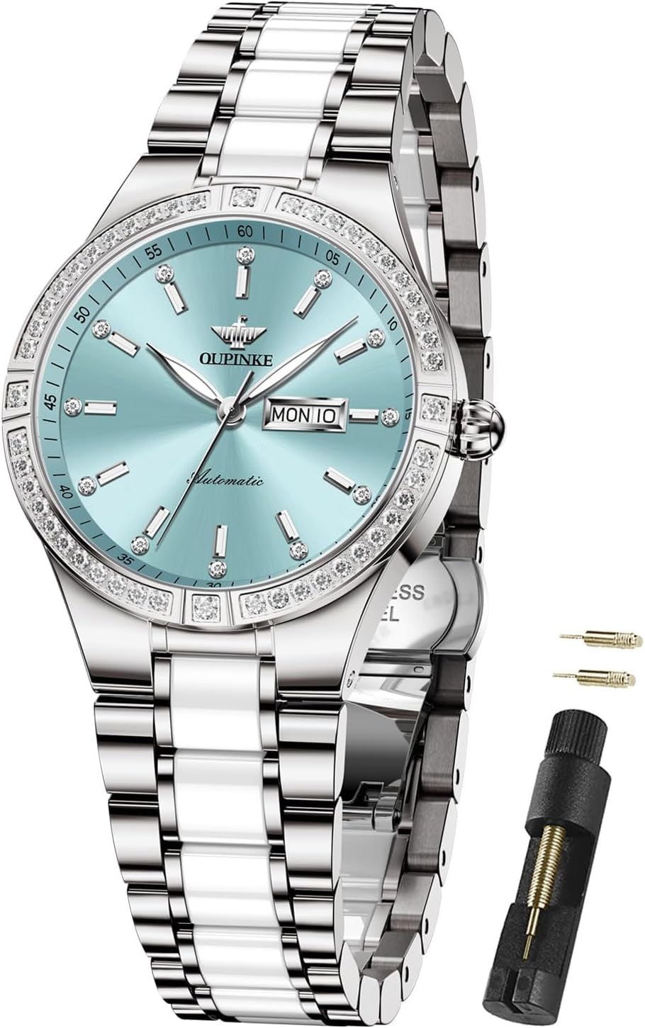OUPINKE Automatic Watches for Women Diamond Luxury Dress Self Winding Stainless Steel Sapphire Crystal Ceramic Ladies Watches