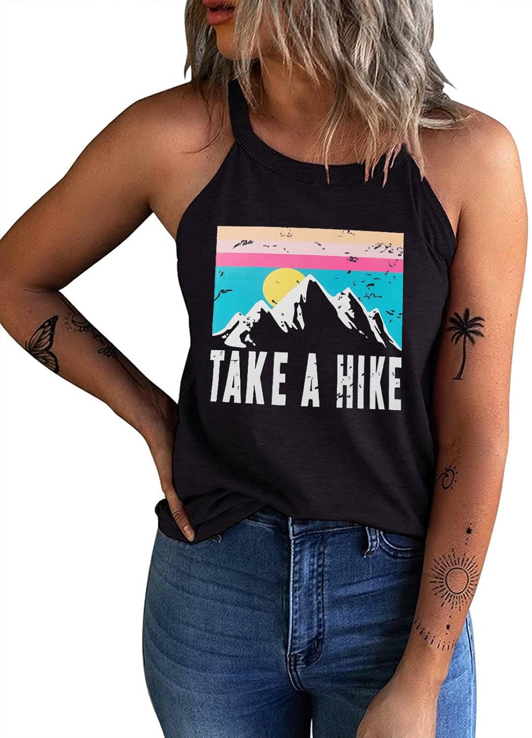 IRISGOD Womens High Neck Tank Tops Summer Graphic Halter Sleeveless Rocker Tee Shirts
