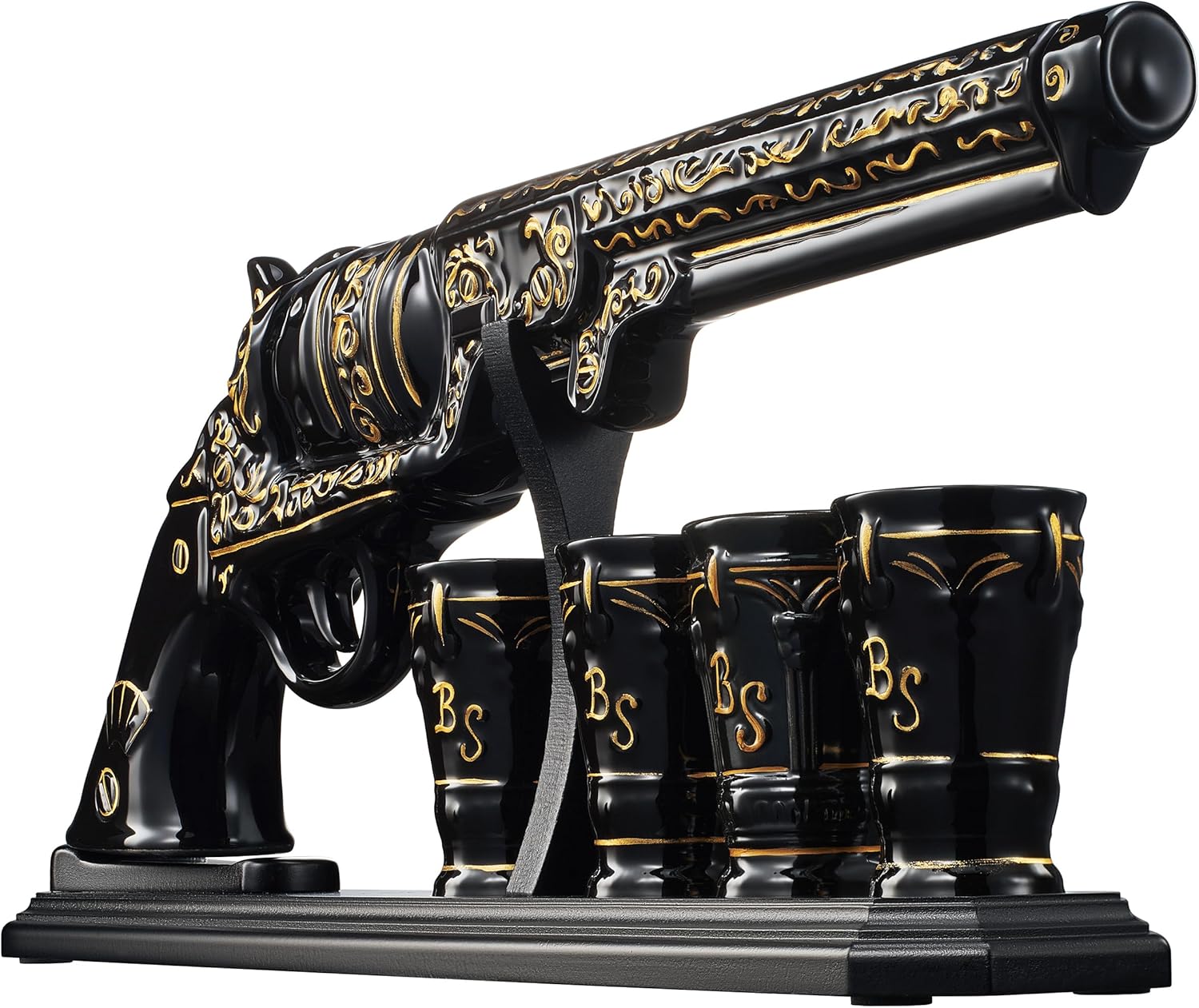 - Sophisticated Design & Premium Craftsmanship - Crafted with a sleek black finish and elegant gold accents, this decanter set adds a luxurious touch to any bar. The striking contrast and timeless design make it a standout piece for entertaining or display.