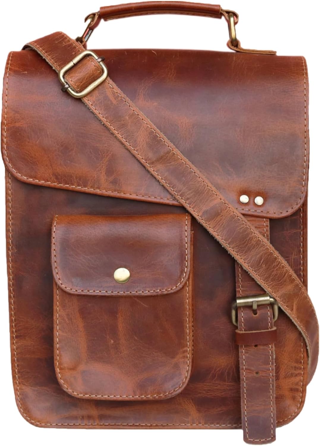 Leather messenger bag shoulder bag cross body vintage messenger bag for women & men satchel man purse
