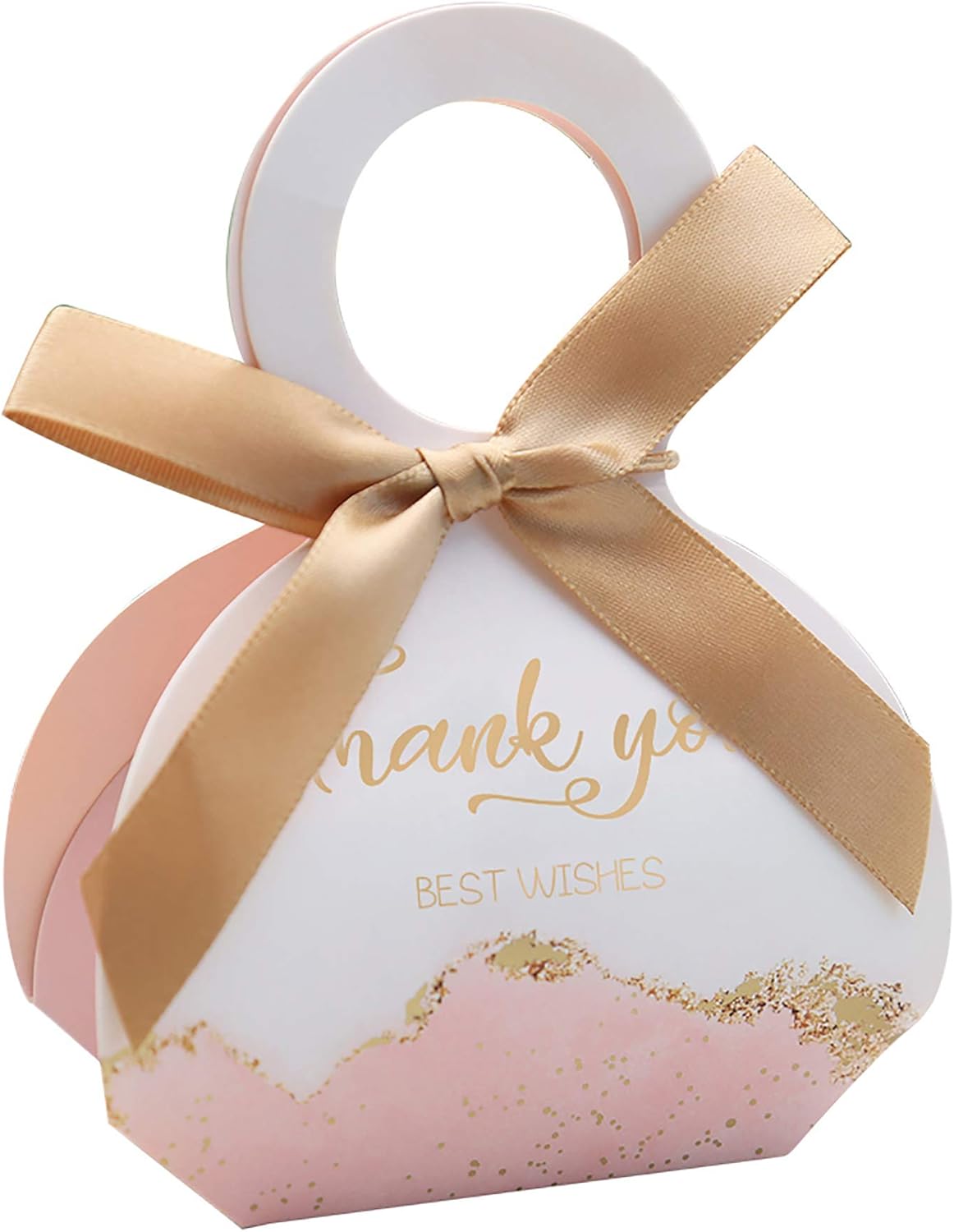 - INCLUDES: our small favor candy box includes 50pcs Pink favor candy box boxes in bulk and 50 gold rubber bands with bow-knot ribbons, made of sturdy and safe paper. no tape or glue required.