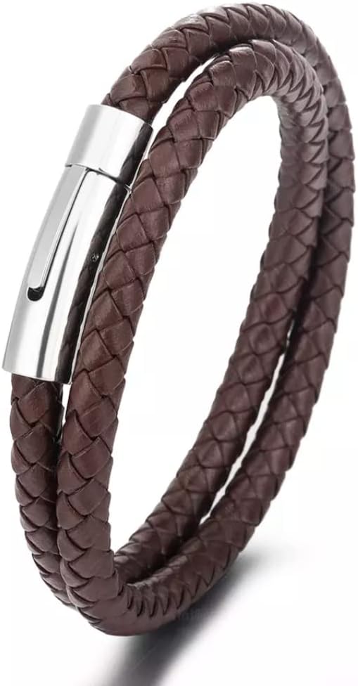 Mens Leather Bracelet 21cm – Genuine Braided Leather Wristband with Stainless Steel Clasp, Fashion Jewelry Gift for Men, Boyfriend, Husband, Dad