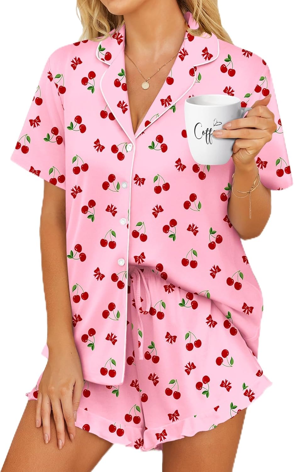 Ekouaer Womens Pajama Sets Button Down Short Sleeve Top and Shorts Cute Pjs Sets Sleepwear
