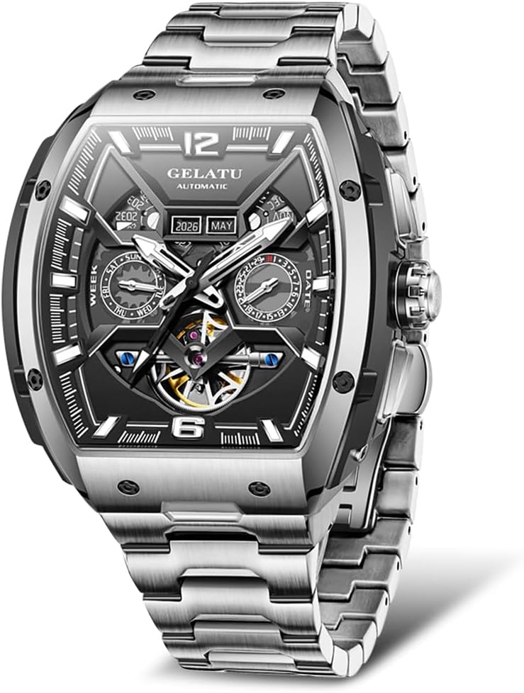 OLEVS Mens Automatic Watches Skeleton Tourbillon Self Winding Dress Watch for Man Luxury Sapphire Crystal Waterproof Square Big Dial Mechanical Watch