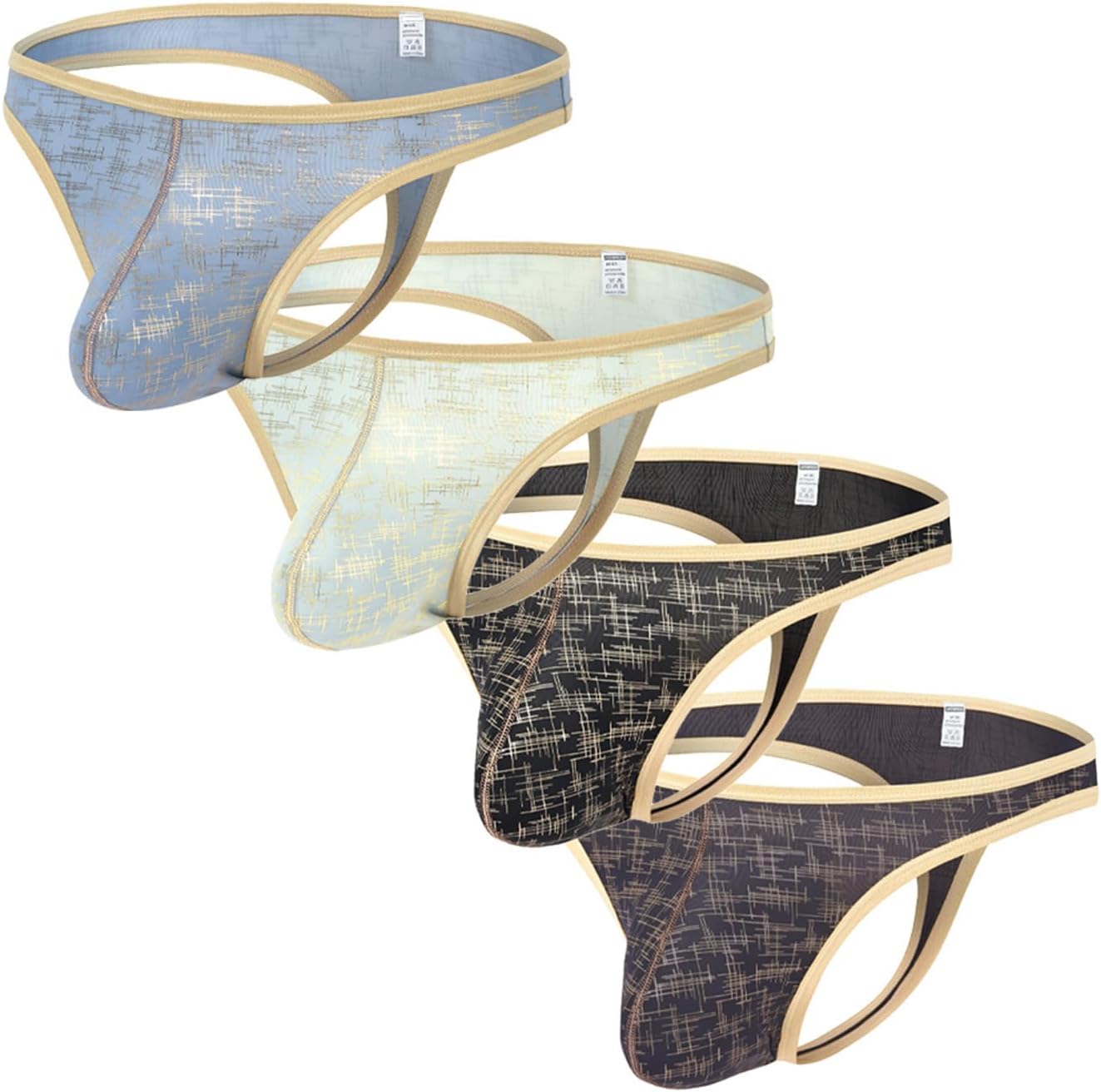 JINSHI Men's Sexy Thong Silky Ultra Thin Printed G-String Bulge Enhancing Pouch Thongs Low Rise T-back Breathable Underwear
