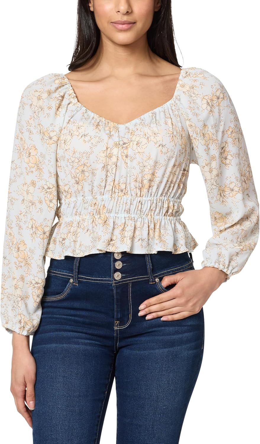 WallFlower Womens Alexandra Long Sleeve Sweetheart Blouse Top