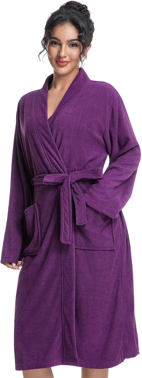 Women Lightweight Bath Robes Terry Cloth Towel Robe Microfiber Knee Length Bathrobe with Pockets