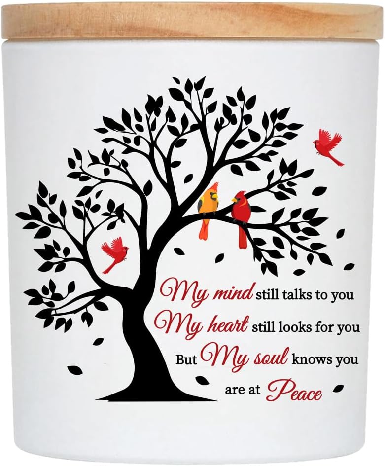- Meaningful Memorial Candle for Loss of Loved One – This 10 oz soy wax candle is a heartfelt sympathy gift for loss of mom, dad, grandma, or friend, featuring the touching quote “My Mind Still Talks to You” and a beautiful red cardinal design symbolizing remembrance and eternal love.