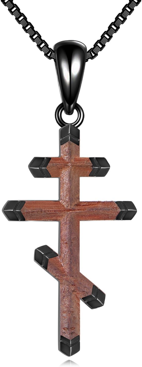 YAFEINI Orthodox Cross Necklace 925 Sterling Silver Wooden Eastern Orthodox Cross Pendant Necklace Religious Jewelry Christian Gift For Men Women