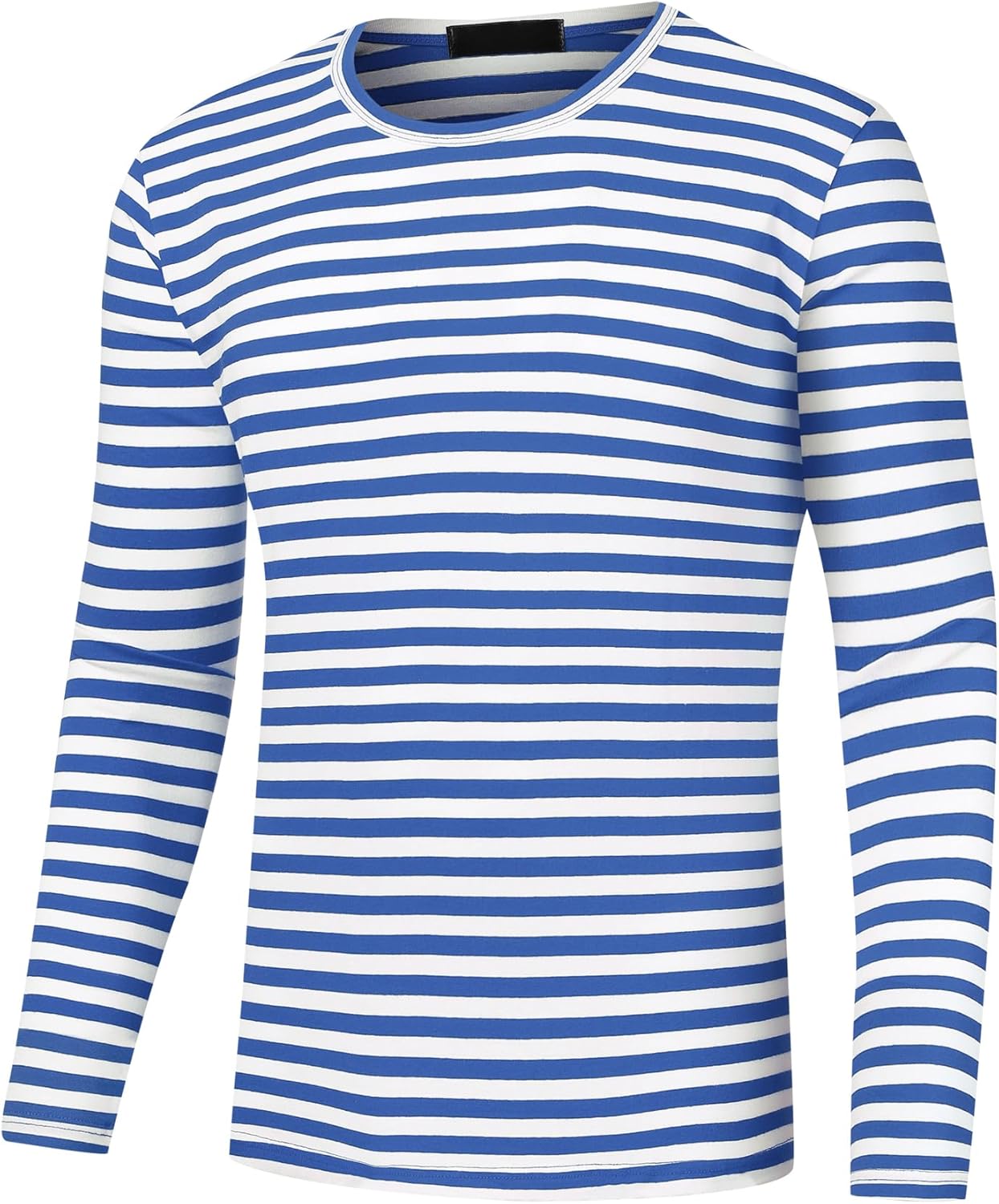 Lars Amadeus Striped T-Shirt for Men's Casual Crew Neck Long Sleeves Basic Pullover Tee Tops